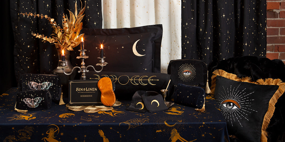 Rebellious, Gothic-inspired home décor and bedding.
